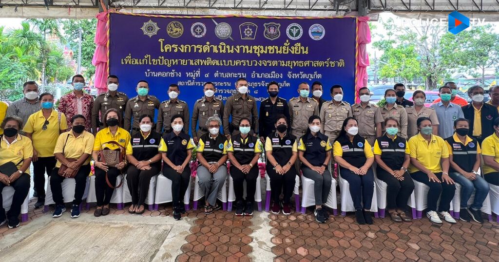 เมื่อวันที่ 23 มิถุนายน ที่ จ.ภูเก็ต พล.ต.อ.สุวัฒน์ แจ้งยอดสุข ผู้บัญชาการตำรวจแห่งชาติ (ผบ.ตร.) โดย พล.ต.อ.รอย อิงคไพโรจน์ รอง ผบ.ตร. ในฐานะผู้อำนวยการศูนย์อำนวยการป้องกันและปราบปรามยาเสพติด สำนักงานตำรวจแห่งชาติ (ผอ.ศอ.ปส.ตร.) มอบหมายให้ พล.ต.ท.ภาณุรัตน์ หลักบุญ รองจเรตำรวจแห่งชาติ (จตช.) ในฐานะรอง ผอ.ศอ.ปส.ตร. ประชุมติดตามความคืบหน้าการดำเนินงาน “โครงการ ดำเนินงานชุมชนยั่งยืนเพื่อแก้ไขปัญหายาเสพติดแบบครบวงจรตามยุทธศาสตร์ชาติ” ในพื้นที่ ตำรวจภูธร ภาค 8