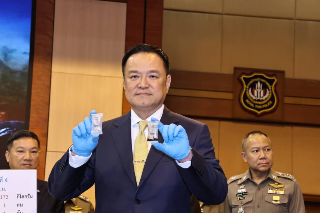 วันนี้ (8 ตุลาคม 2568) นายอนุทิน ชาญวีรกูล นายกรัฐมนตรีและรัฐมนตรีว่าการกระทรวงมหาดไทย เป็นประธานการแถลงผลการปฏิบัติงานด้านการปราบปรามยาเสพติด ณ กองบัญชาการตำรวจปราบปรามยาเสพติด โดยมี พล.ต.ท.รุทธพล เนาวรัตน์ รัฐมนตรีว่าการกระทรวงยุติธรรม, พล.ต.อ.กิตติ์รัฐ พันธุ์เพ็ชร์ ผบ.ตร., พ.ต.ต.สุริยา สิงหกมล เลขาธิการ ป.ป.ส., พล.ต.อ.สำราญ นวลมา รอง ผบ.ตร., พล.ต.ท.สมประสงค์ เย็นท้วม ผู้ช่วย ผบ.ตร., พล.ต.ท.อาชยน ไกรทอง ผบช.ปส., พล.ต.ท.รุ่งโรจน์ ฐากูรปุณยสิริ ผบช.ตชด., พล.ต.ท.กฤตธาพล ยี่สาคร ผบช.ภ.5, พล.ต.ท.สยาม บุญสม ผบช.น., พลตรีสราวุธ ประเสริฐชีวะ รอง ผอ.ศปป.2 กอ.รมน. และผู้บังคับบัญชา เข้าร่วมอย่างพร้อมเพรียง เพื่อตอกย้ำความมุ่งมั่นของรัฐบาลในการ “ต้องชนะยาเสพติด” ให้ได้อย่างเด็ดขาด